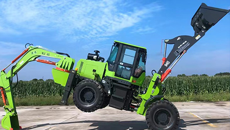 连接复合动作一拖二操作手柄,简介易操作由于它具有共同的结构,前端是装载设备,后端为发掘设备。在施工时,操作手只需求翻滚一下座椅,就可以结束从装载机到发掘机的改动